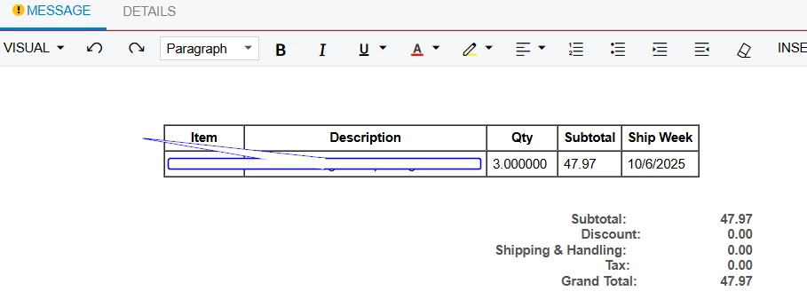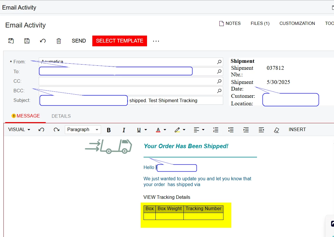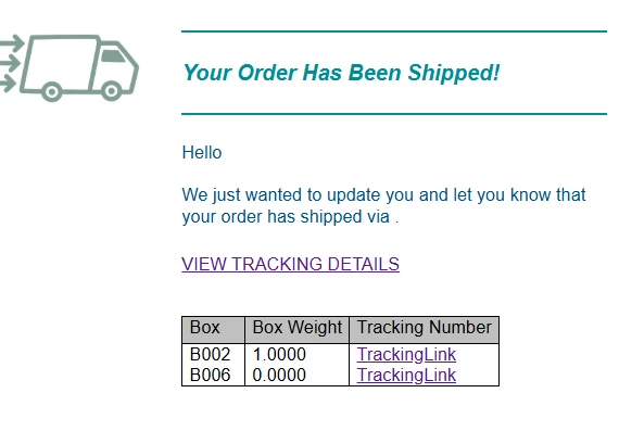 I prepared a sample email template to send package information when a shipment is confirmed.