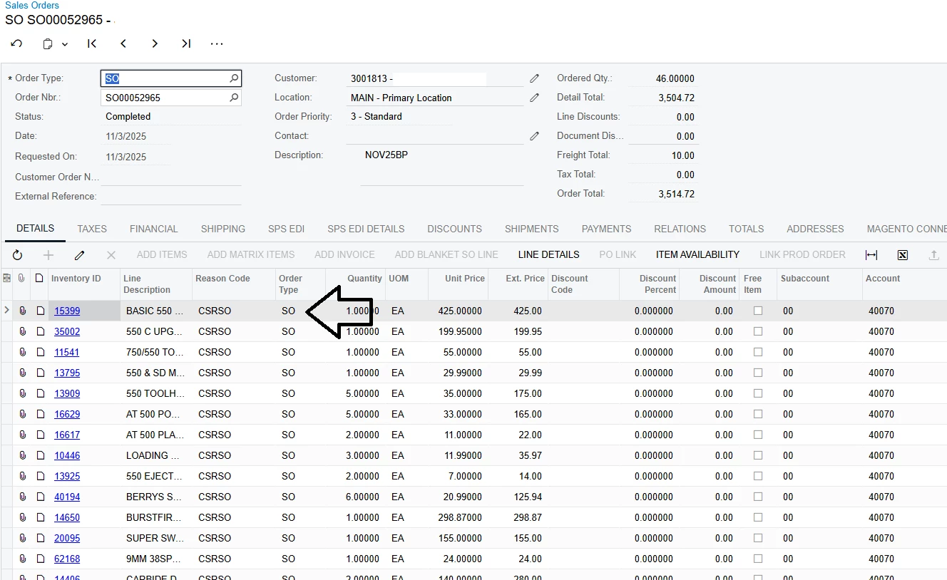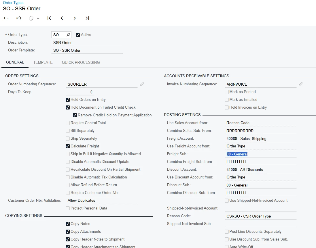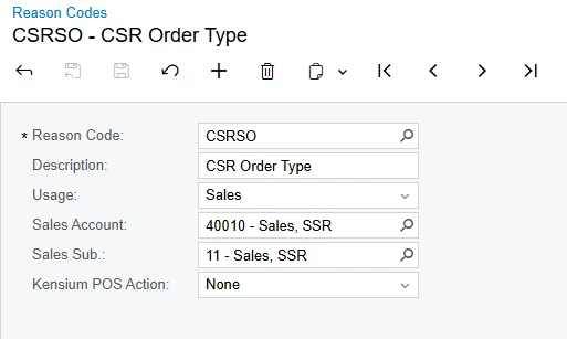 I recently migrated from Sage 500 To Acumatica and we installed the SalesOrderTypeDefaultReasonCode module from github. Adding default reason code by sales order enables you to set default sales and sub GLs when a reason code is for each sales order. For example all of our sales service reps orders use the CSRSO which sets a default sales gl account and default sales sub account to 40010 and 11 respectively.
