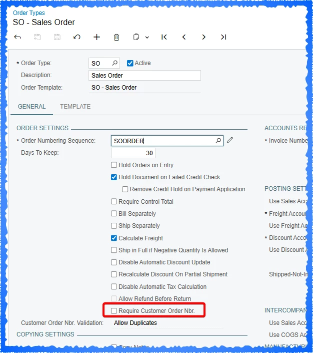 Any ideas!  Customer cannot generate an invoice from shipment.  A Sales Order invoice can be generated manually and an AR Invoice can be generated manually.  However, from the Shipment, the error ”‘Invoice Nbr’ cannot be empty” is returned.  Below shows that the numbering sequence for invoices related to the sales order type is not manual.
