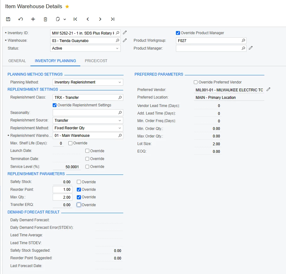 We cannot have a full case (Lot Size) on our shelves. How can we tell Acumatica that Lot Size is only for Purchase order to our supplier, and that Transfer Orders to our stores do not need to be in full LotSize?