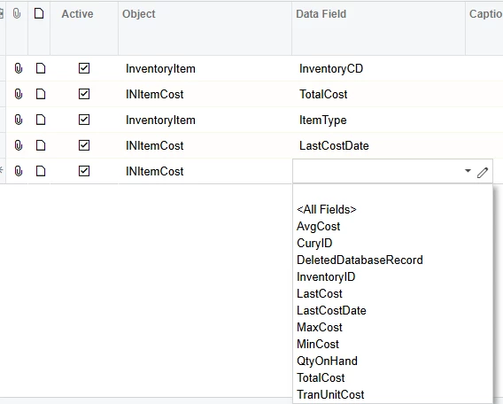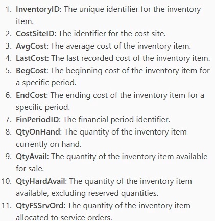 Some of the DACs you can use include: InventoryItemCurySettings, INCostSite, INItemStats, and INItemCostHist.