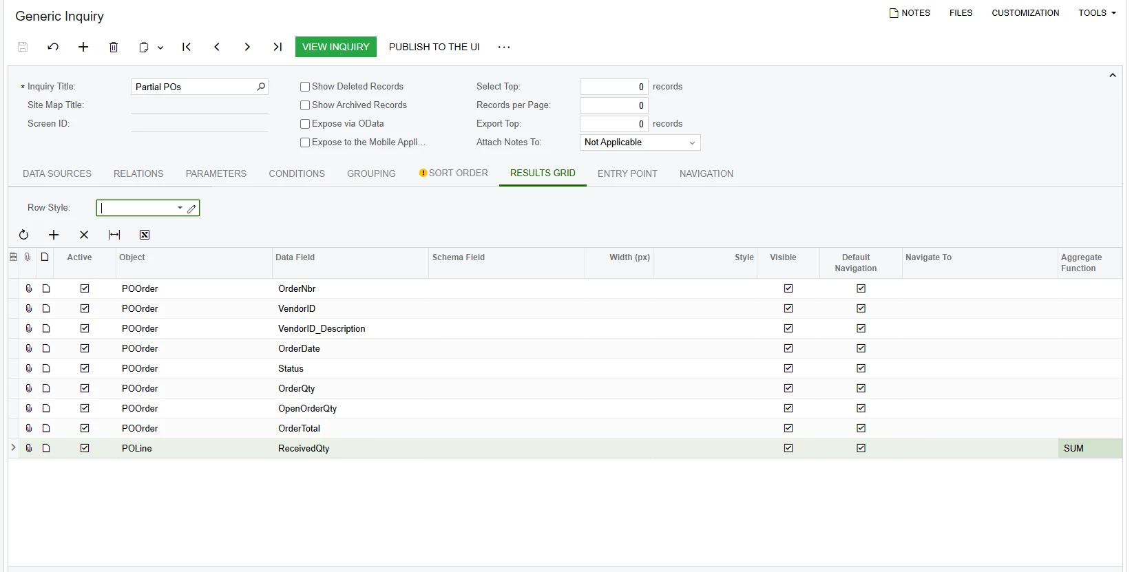 Did you have to add an additional table to bring in the POLine.Received qty.