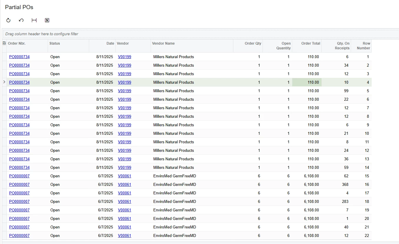 I am fairly new to ACM and would like some help on editing my purchase orders GI. Just as the GI shows the Order qty and the Open qty, I need to be able to see the "total qty on receipts".