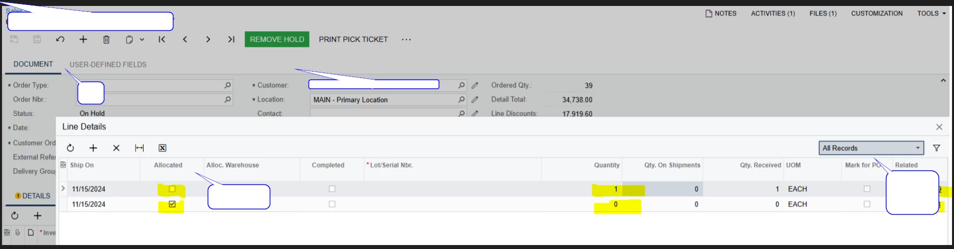 2. Change the Qty on the second line which has Move in the Related Document column.