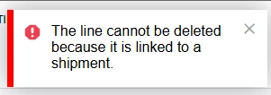 On the shipment, we are not trying to delete any items, simply clicking the “Confirm Shipment” button and receiving that error. The quantity lines are as follows: