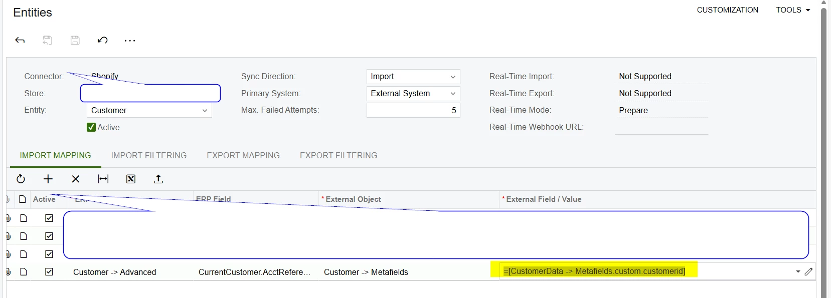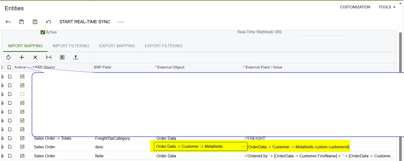 The same entity mapping working for customer entity but it is not working for sales order.