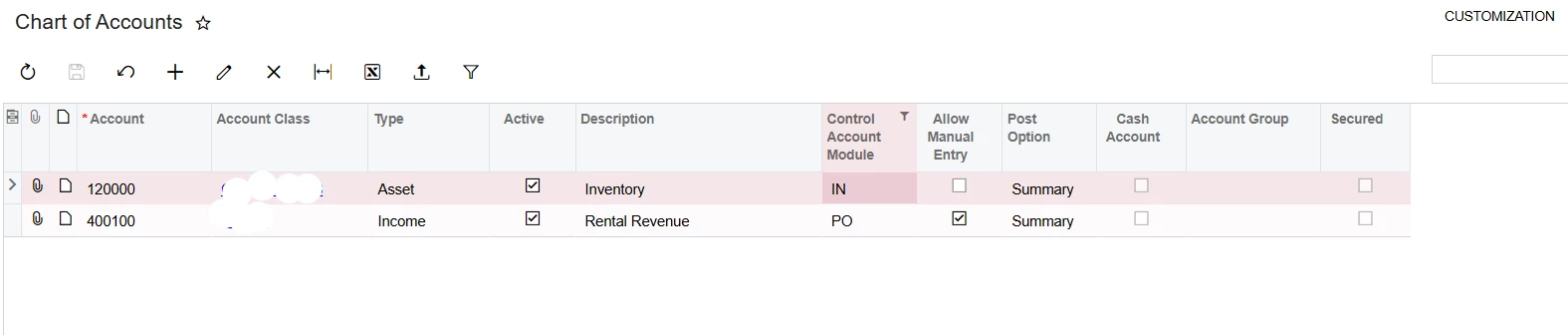 To resolve this, I updated the Chart of Accounts by adding the PO module for account 400100 and enabling Manual Entry.