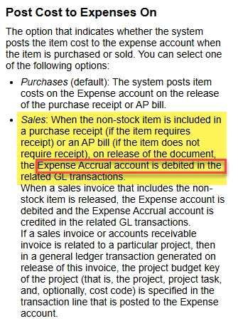 If Post Cost to Expense is Sales, Expense Accrual Account will be selected as account for relevant line instead of defined Expense Account.