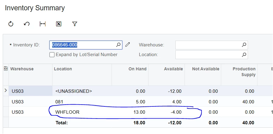 i have only had this issue with production parts and recalculating the inventory does not remove the negative qty in our shipping location.