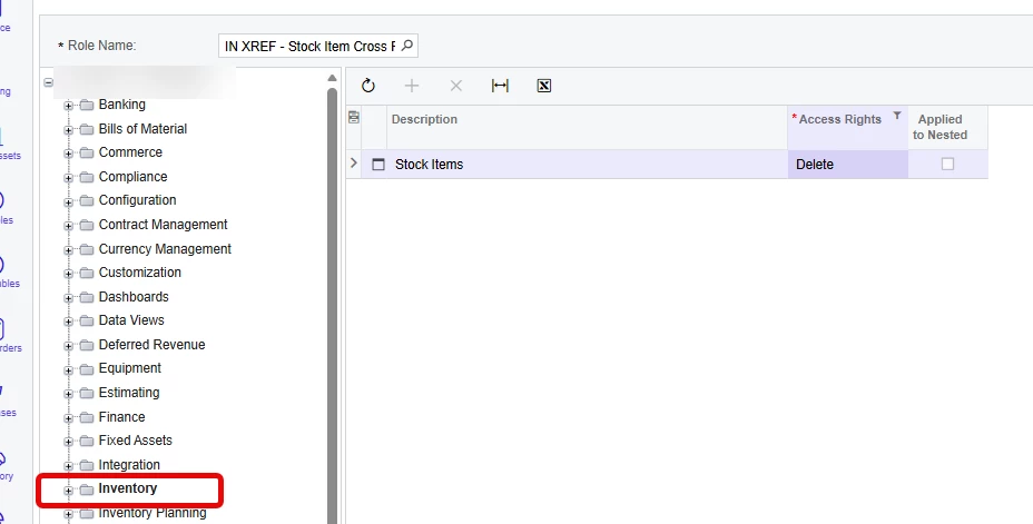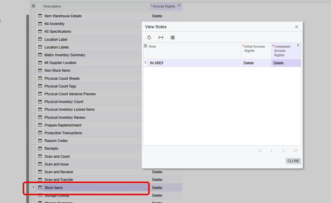 - Created a new role (IN X REF) and only gave access rights to the Stock Items screen in Inventory