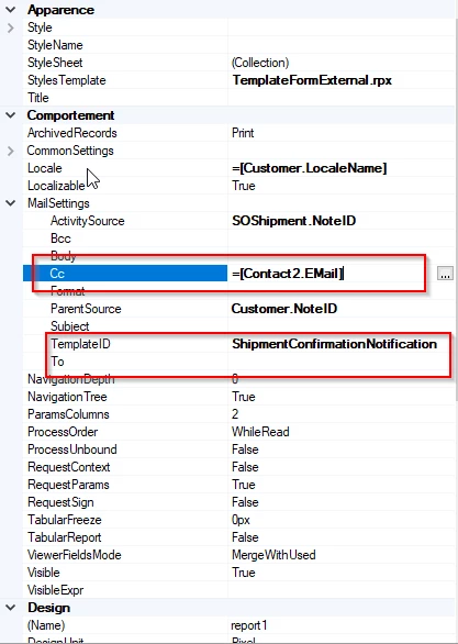 More importantly, I would like to add the email address of the default salesperson in the Cc: field in the ShipmentConfirmationNotification email, but it does not seem to be available to add in the Report Designer. The salesperson is specified on the Sales Order but not the email address, and the salesperson is nowhere on the Shipment Confirmation. And the best I can do is have the SalesPersonID, using =[SOOrder.SalesPersonID] which isn’t an email address but at least indicates whose email I should manually enter.