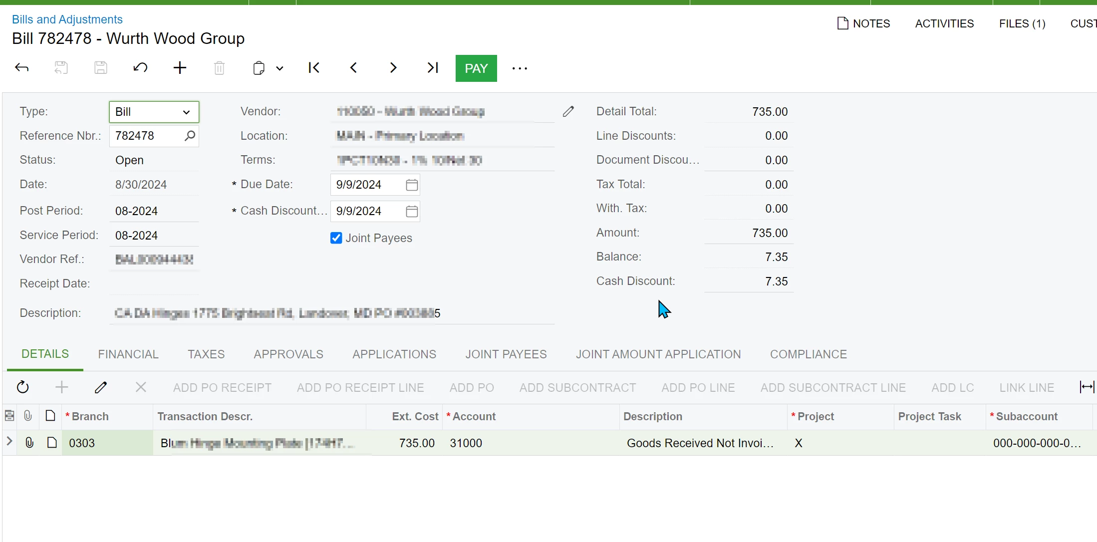 When I’m trying to create the PAYMENT from the Bills and Adjustments screen and I’m getting below error. Can you please help me to understand why I’m I getting this error?