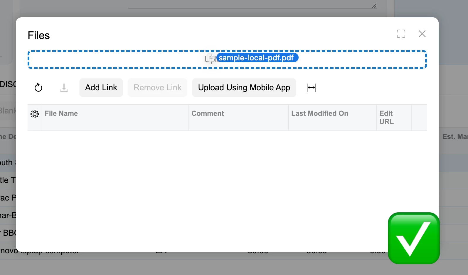 So far, to make it work we have to click on Files, then drag and drop to that window.