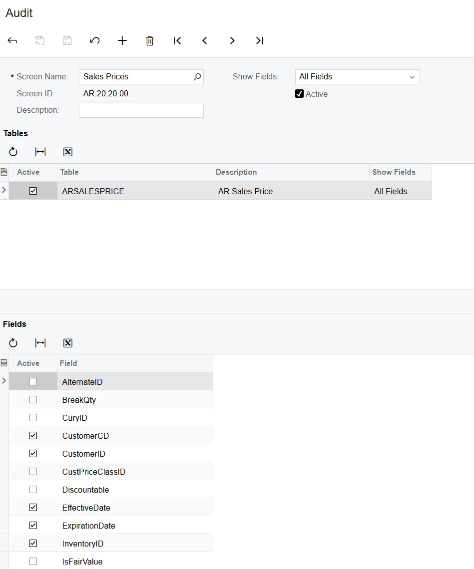 We are trying to enable the audit history on the Sales prices screen AR202000. We have it configured but when opening the audit history from the screen’s tools menu, nothing happens visually but when trying to navigate after, the site is slow and unresponsive until you close the browser window and reopen. Does anyone have any insight as to what the issue might be?