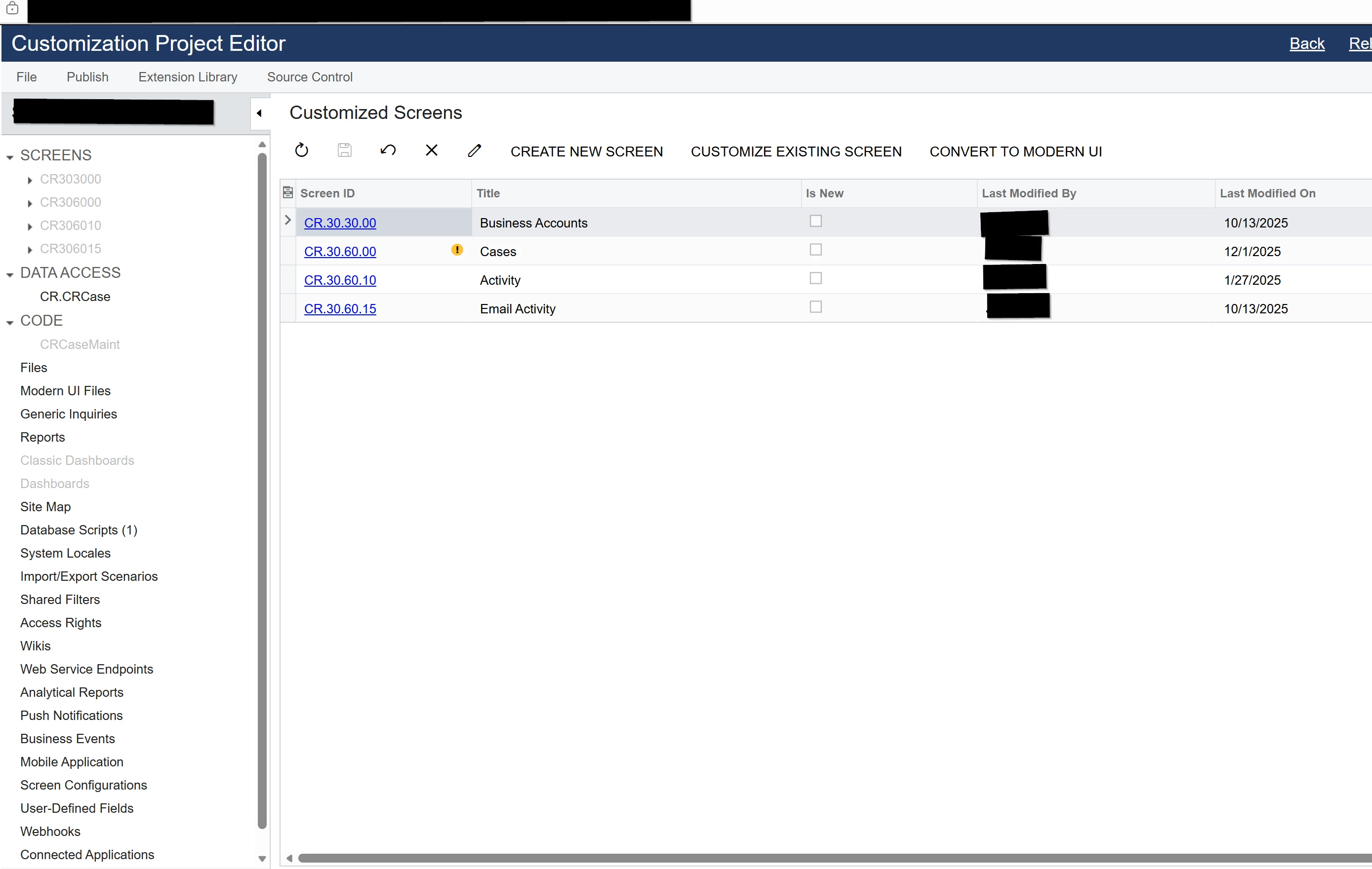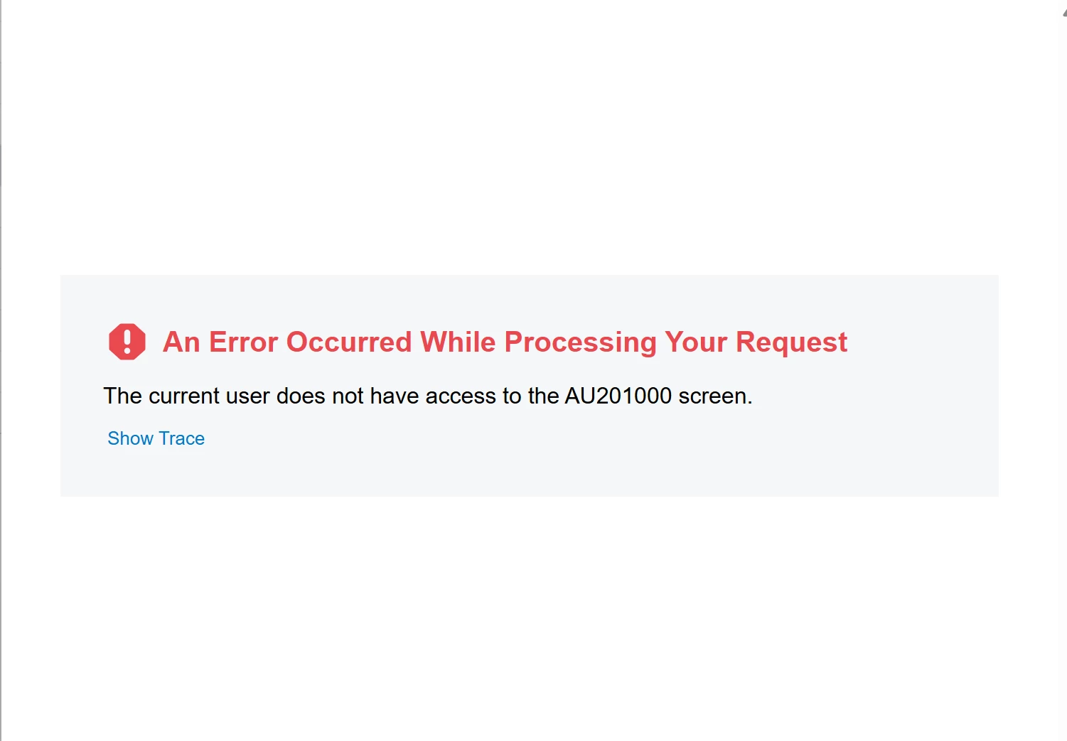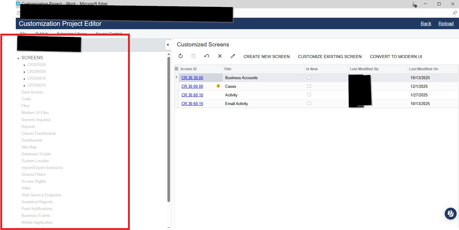 After finding where this AU201000 screen was, called “Screens” under the Hidden section of the Access Rights, I originally thought I could just give access to be able to Edit the project, but even once I did that, it still had everything greyed out on the left side.