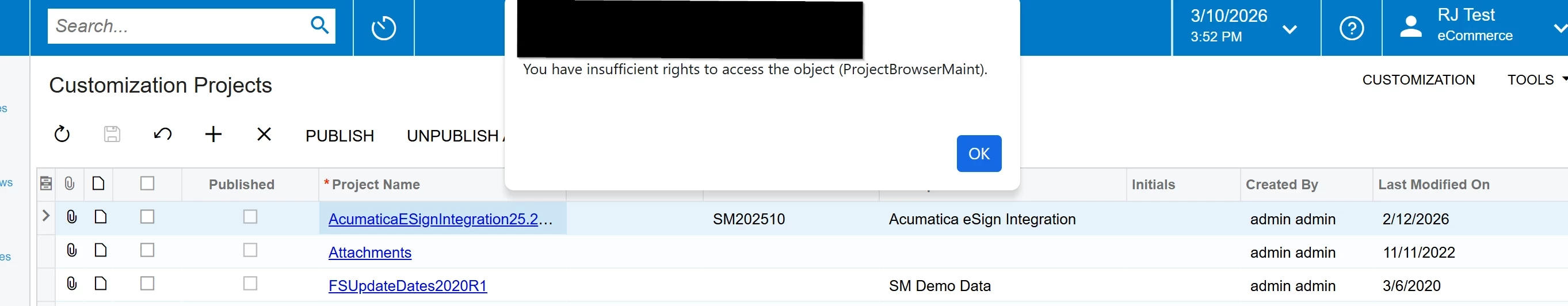I don’t want to give the User the Admin role, but does anyone know what is needed to edit the Customization Projects themselves.