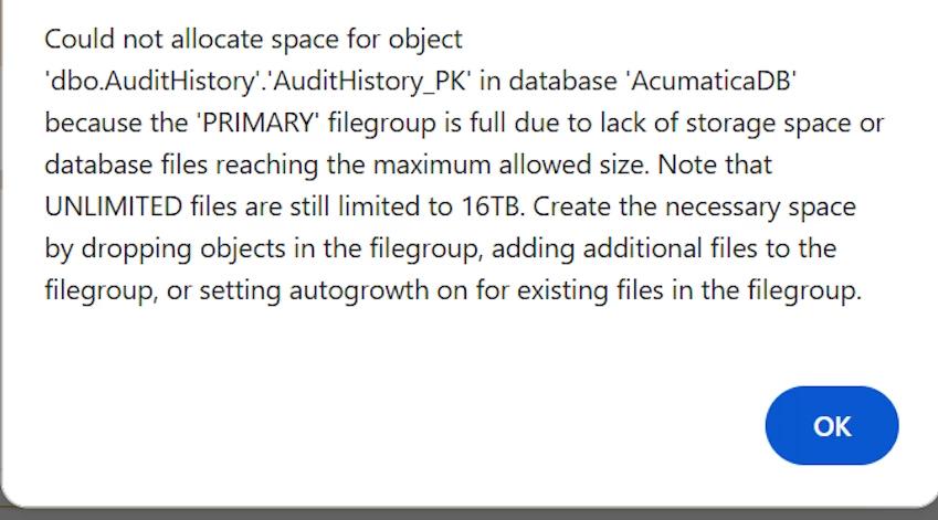 Turn ON Autogrowth for the PRIMARY file (.mdf)