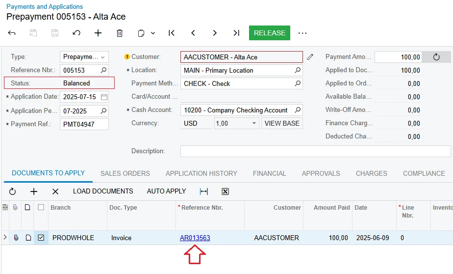 I have created three advance invoices (Prepayment Invoices) for the following invoice, two of which have already been paid and one is still outstanding. What do I need to change so that all advance invoices—both paid and unpaid—appear on the final invoice?