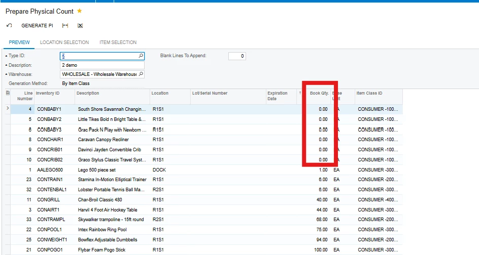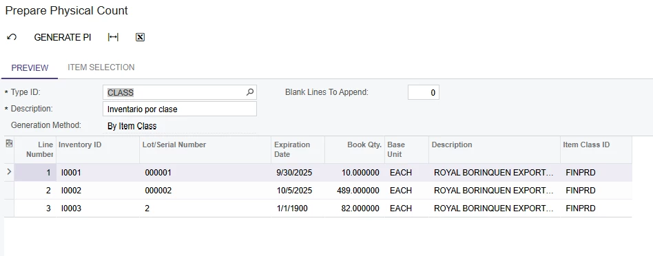 I am trying to do a prepare a physical count in Acumatica 2025 R1