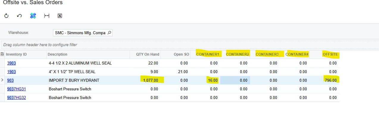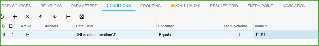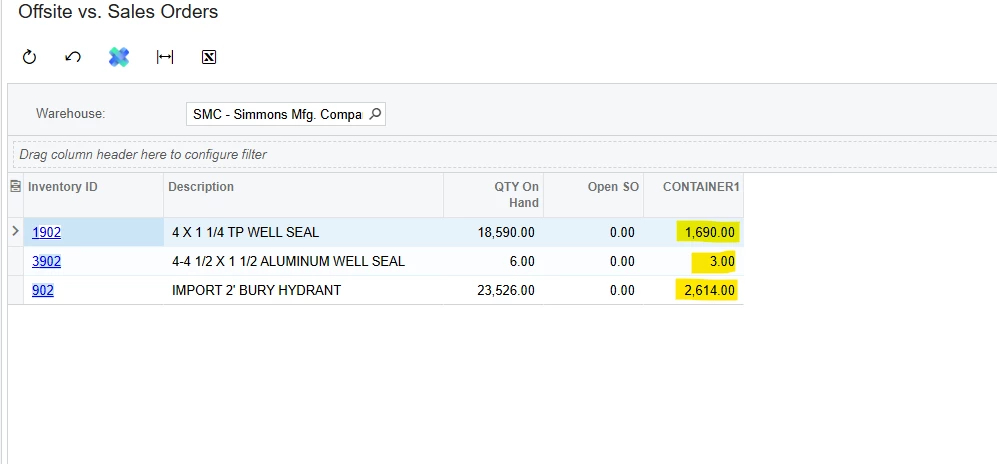 =([INLocationStatus.LocationID]=CONTAINER1) but this obviously is not correct as I am seeing the current on hand values across all locations. Any ideas on the formula to use to accomplish this goal?