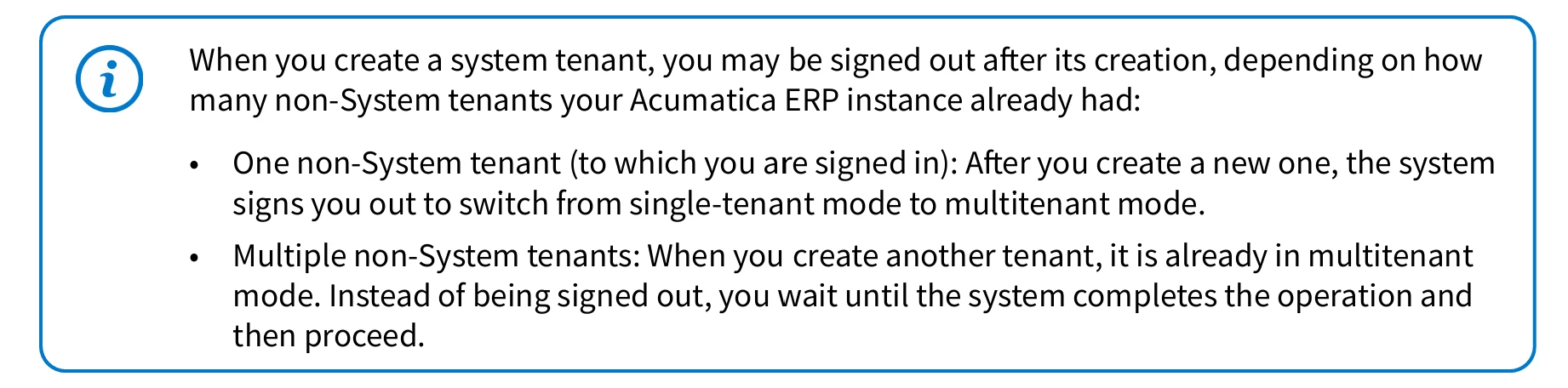 Understood, but I thought system tenant was something invisible, in the background that is created automatically? So, when we create additional tenants, we are creating additional non-system tenants, but there is always only one invisible system tenant running in the background? It’s the wording of the training material that I found confusing - but I think I understand now. Thank you!