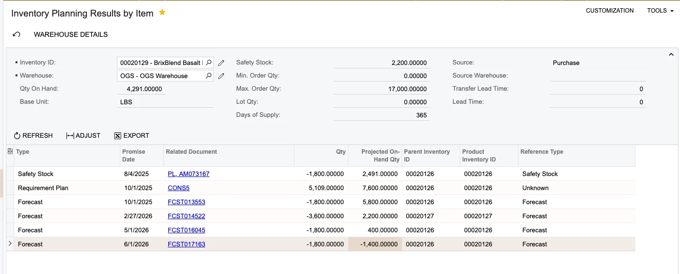 I’m wondering why inventory planning is allowing us to have a negative “projected on hand quantity” when I am asking for a safety stock of 2,200?