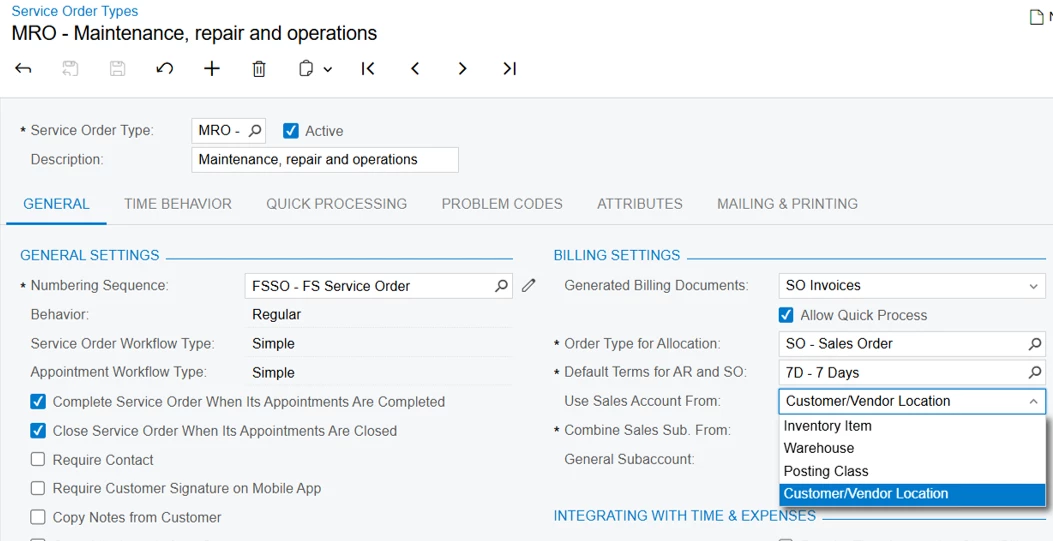 I am wanting to bill the service order using the sale order type that is set to use reason codes, but I get an error due to the reason codes being empty.
