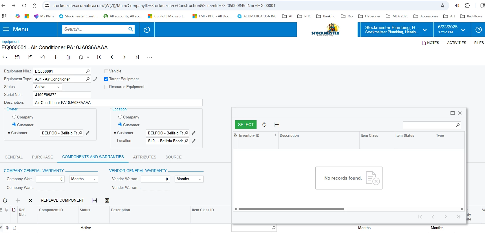 We cannot figure out an easy way to store pertinent equipment information such as filter sizes, belt sizes, etc., for a piece of equipment where it will be easily accessed for appts and Service Contract work.