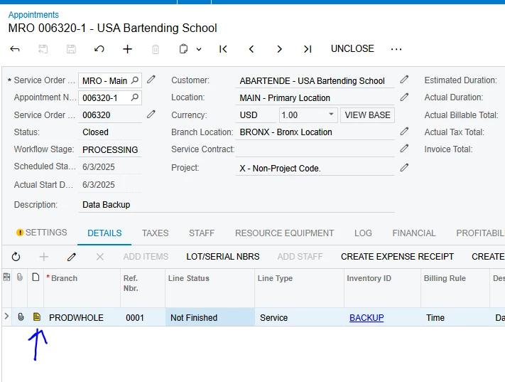 Follow-up appointments: To mark unfinished work or services, to can use the “Not Finished” status on the appointment line. This will indicate that a new appointment needs to be scheduled. How it works? The related line on the service order will get status “Requiring Scheduling” so that when a new appointment is created, this service will be included.