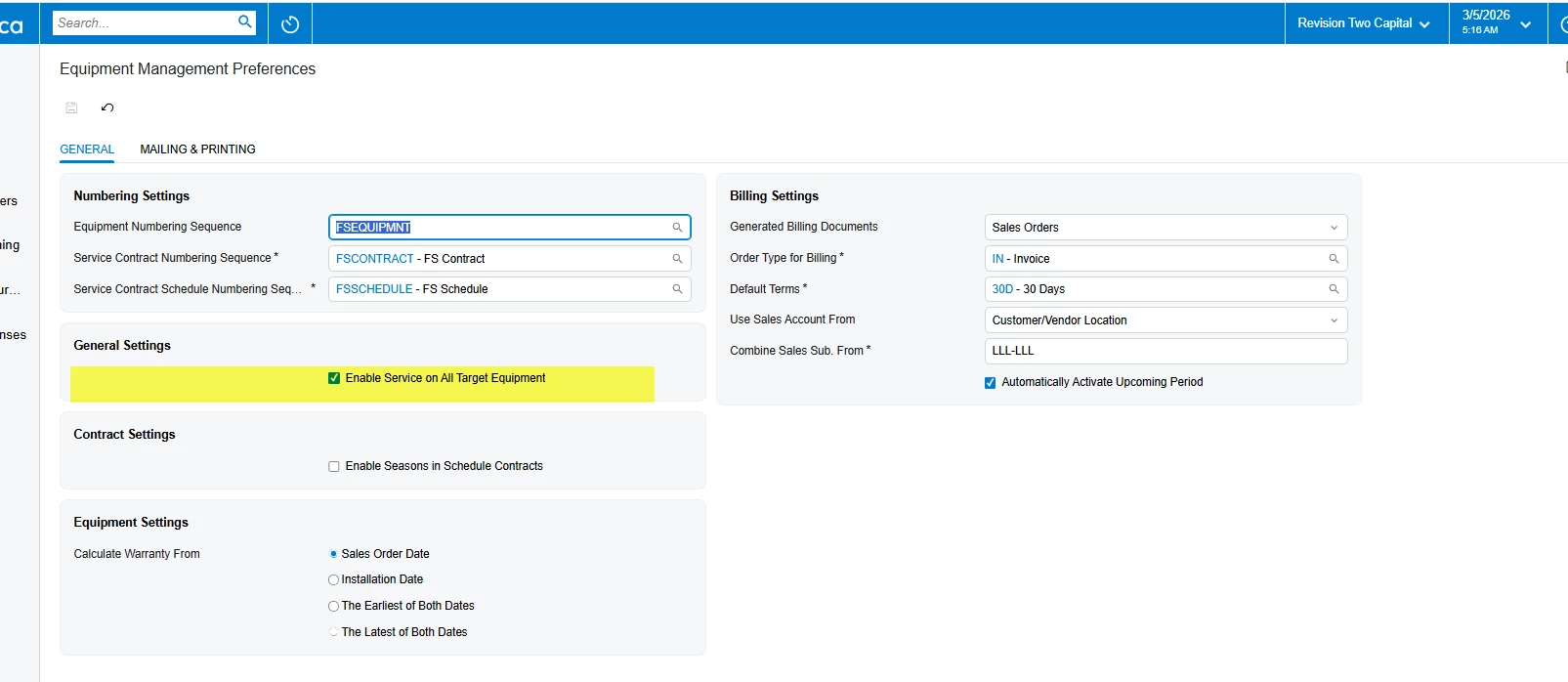 I have a scenario where the several pieces of equipment that need to be serviced and all the equipments are company owned and all in company location not in customer location. We have created these machines as Equipment records. However, when creating a Service Order, I am able to select this Equipment anywhere in the service Order.