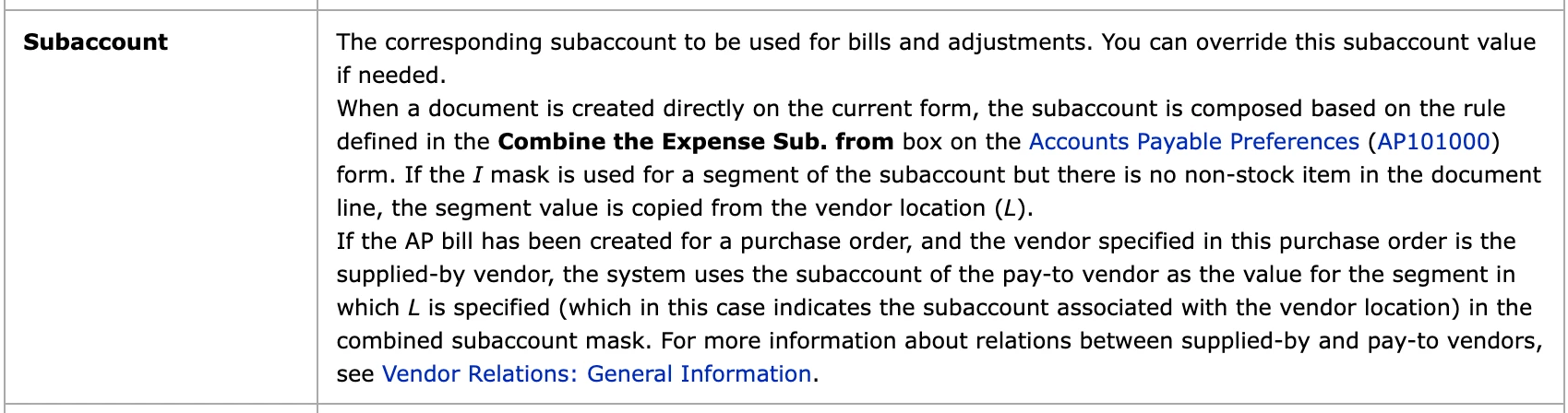 I have been using the Incoming Documents feature to bring in my invoices into Acumatica with the GL, however the subaccounts never populate even though I have it set up on the non-stock sku.