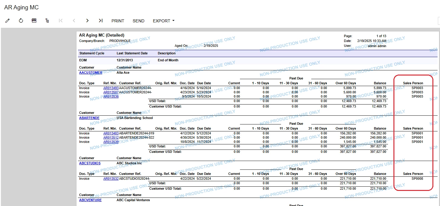 Curious if there is a good report in Acumatica that would generate an AR report of aged invoices based on sales person...or would that be more of a customization request?