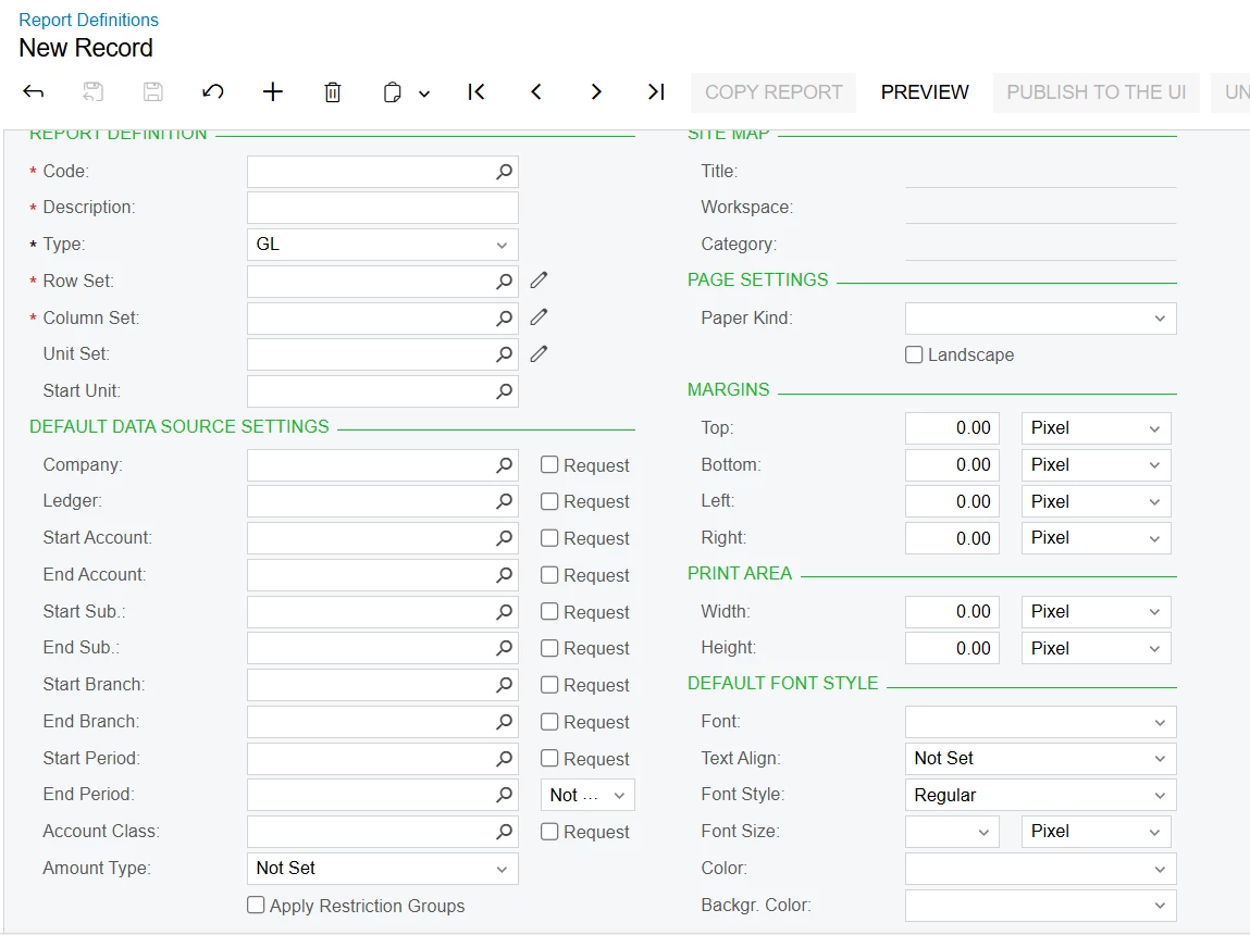Is it possible to add a Date Range filter to Financial Reports in Acumatica through a customization? I'm trying to enhance financial reporting and would like users to be able to specify a from/To date range before running a report. Has anyone implemented something similar or used a customization approach to make this work?