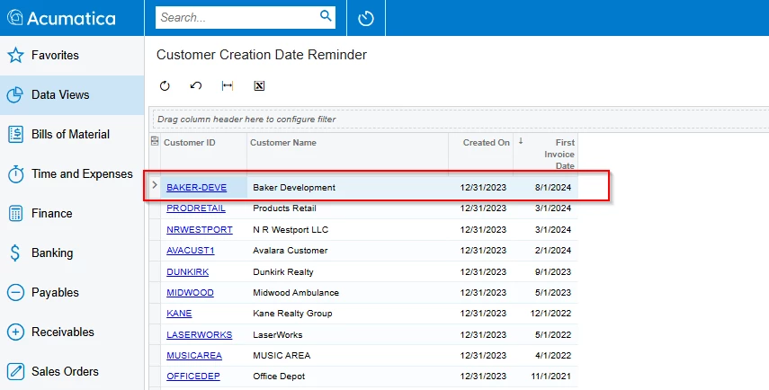 I’ve created a Generic Inquiry (GI) to capture the customer’s first invoice date, and I’m using that as the customer start date.