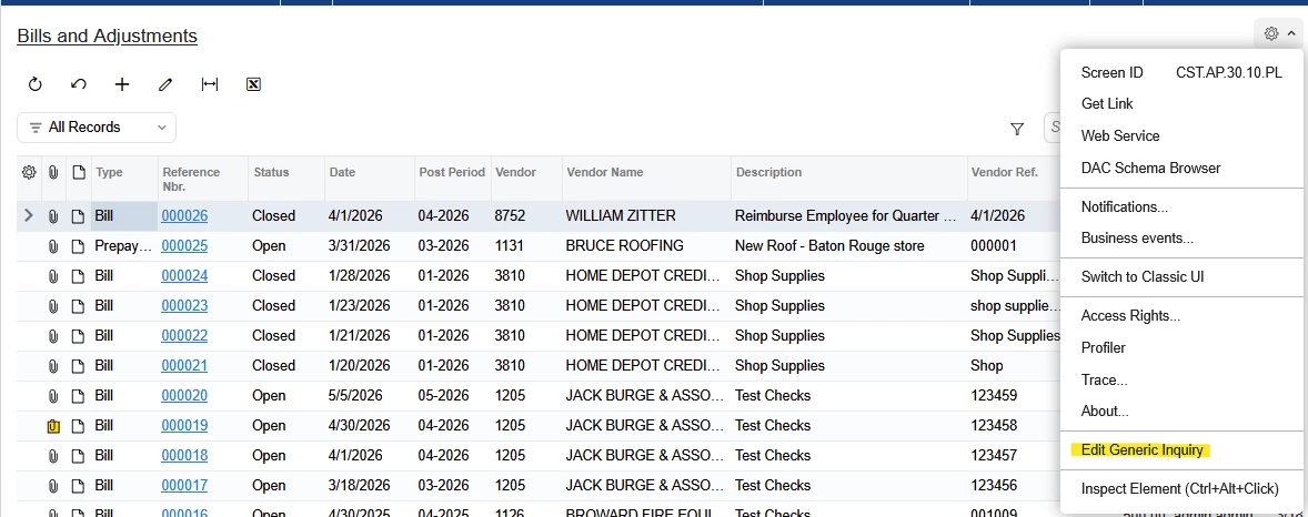 I’m new to Acumatica and currently exploring the Accounts Payable module and Generic Inquiries.