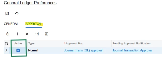1. Enable Approval Workflow - Go to General Ledger Preferences and enable the approval workflow option for journal transactions.