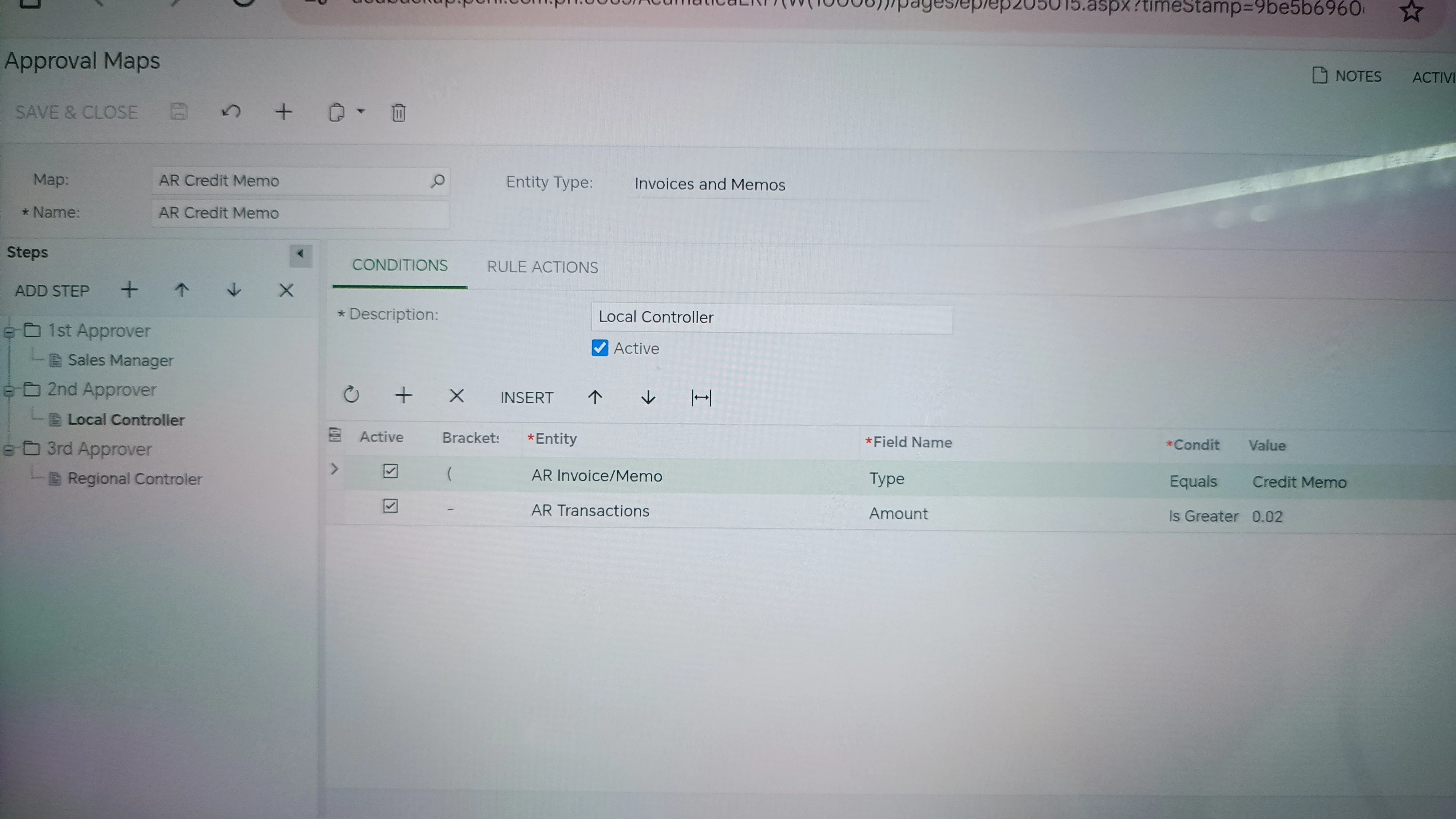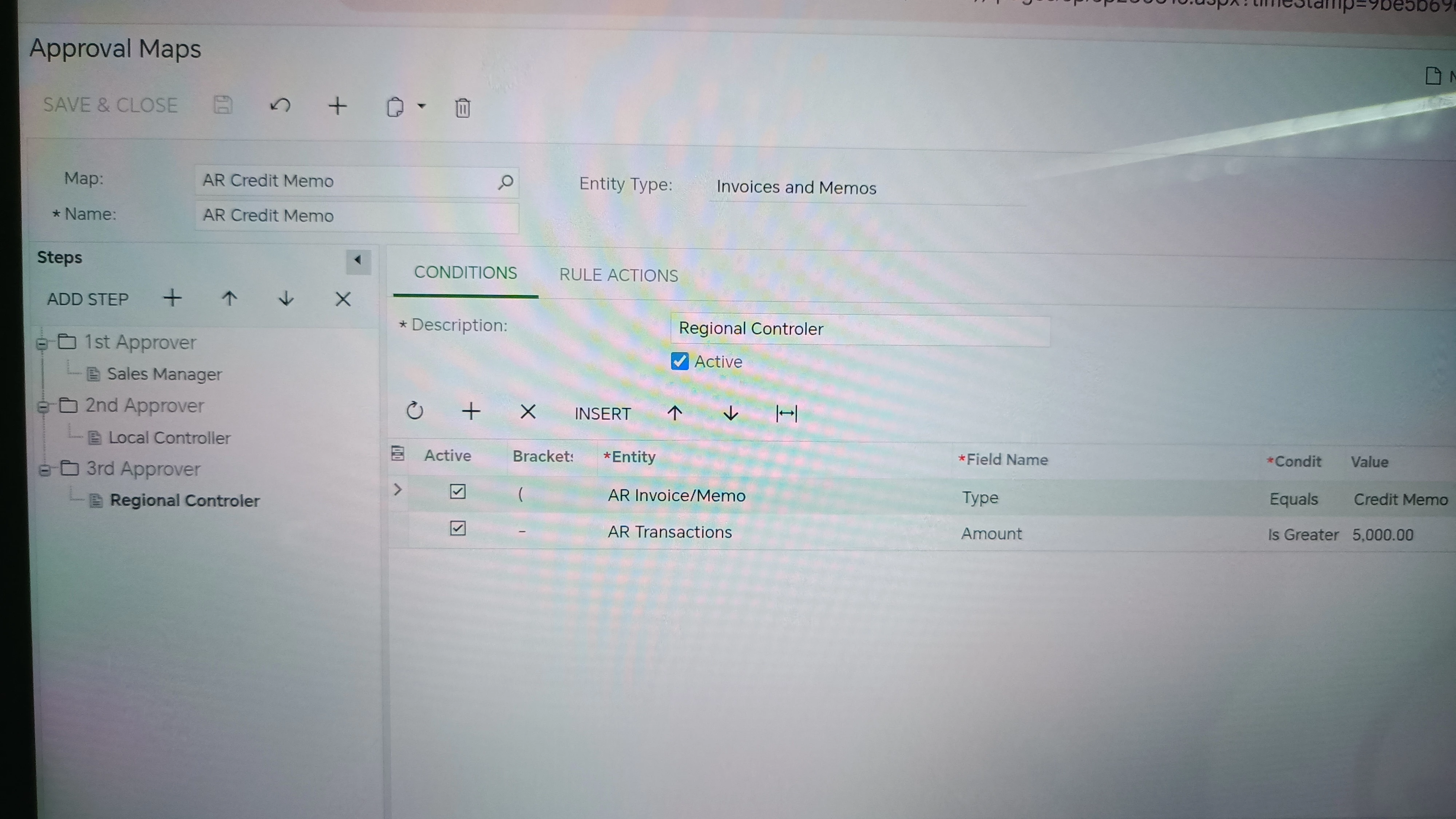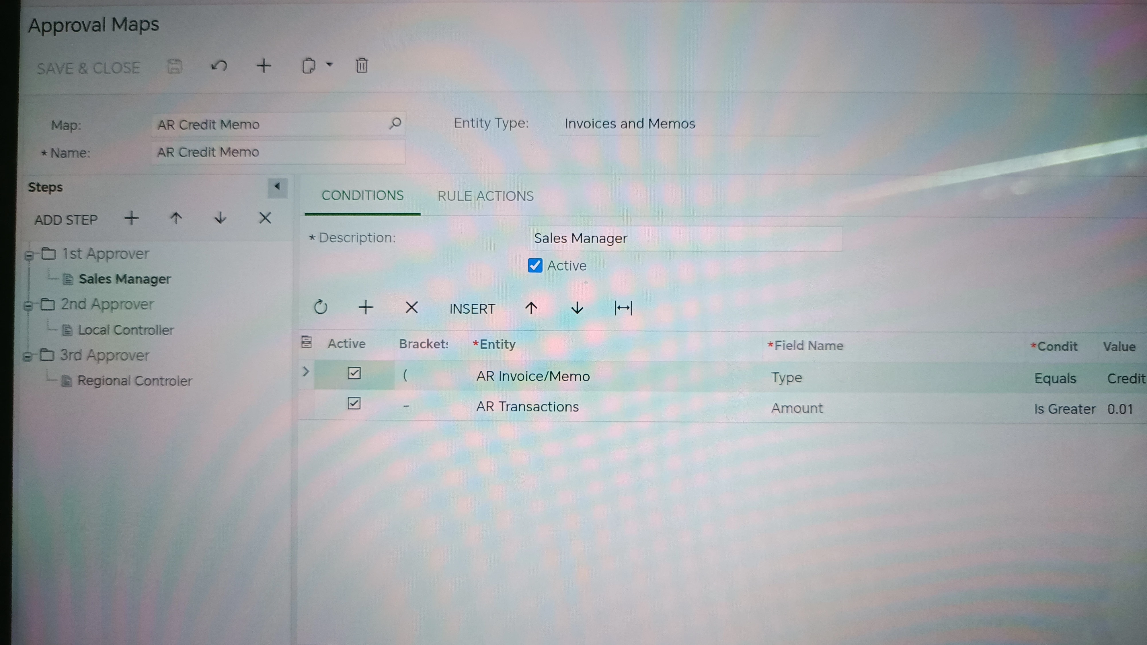 i am just wondering how can i set properly the workflow for approving credit memos, so that Sales Manager will always be the first to confirm new credit memo. Right now our AR map for credit notes is the Sales manager on the top and then the local controller, but in reality is other way around. The first the crontorller is getting the memos and then sales manager. Do you know maybe what is causing this flow?