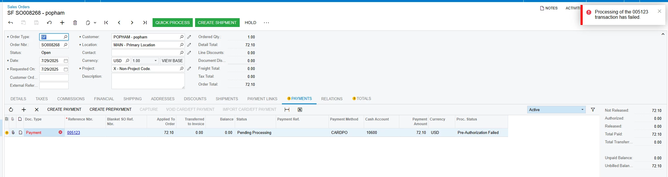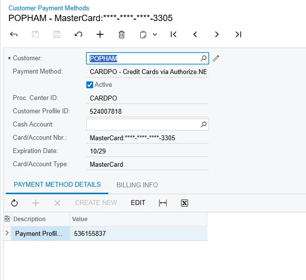 We're using Acumatica 2024 R1 (Build 24.107.0004) and Authorize.Net as our payment gateway.