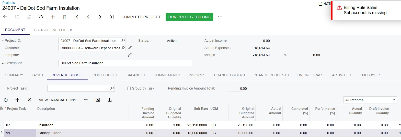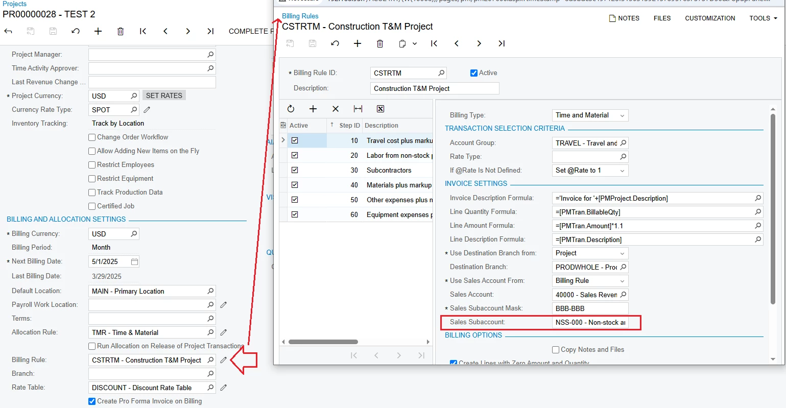 Please check if the Sales Subaccount in the Billing Rule screen is missing?