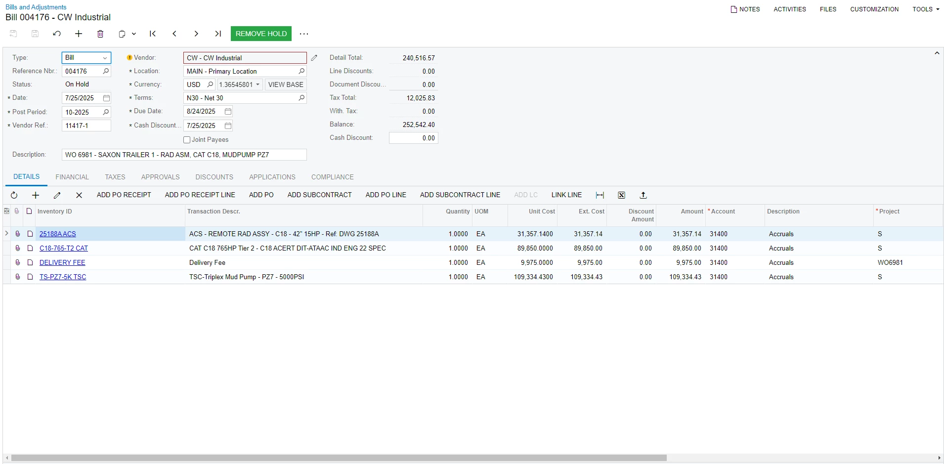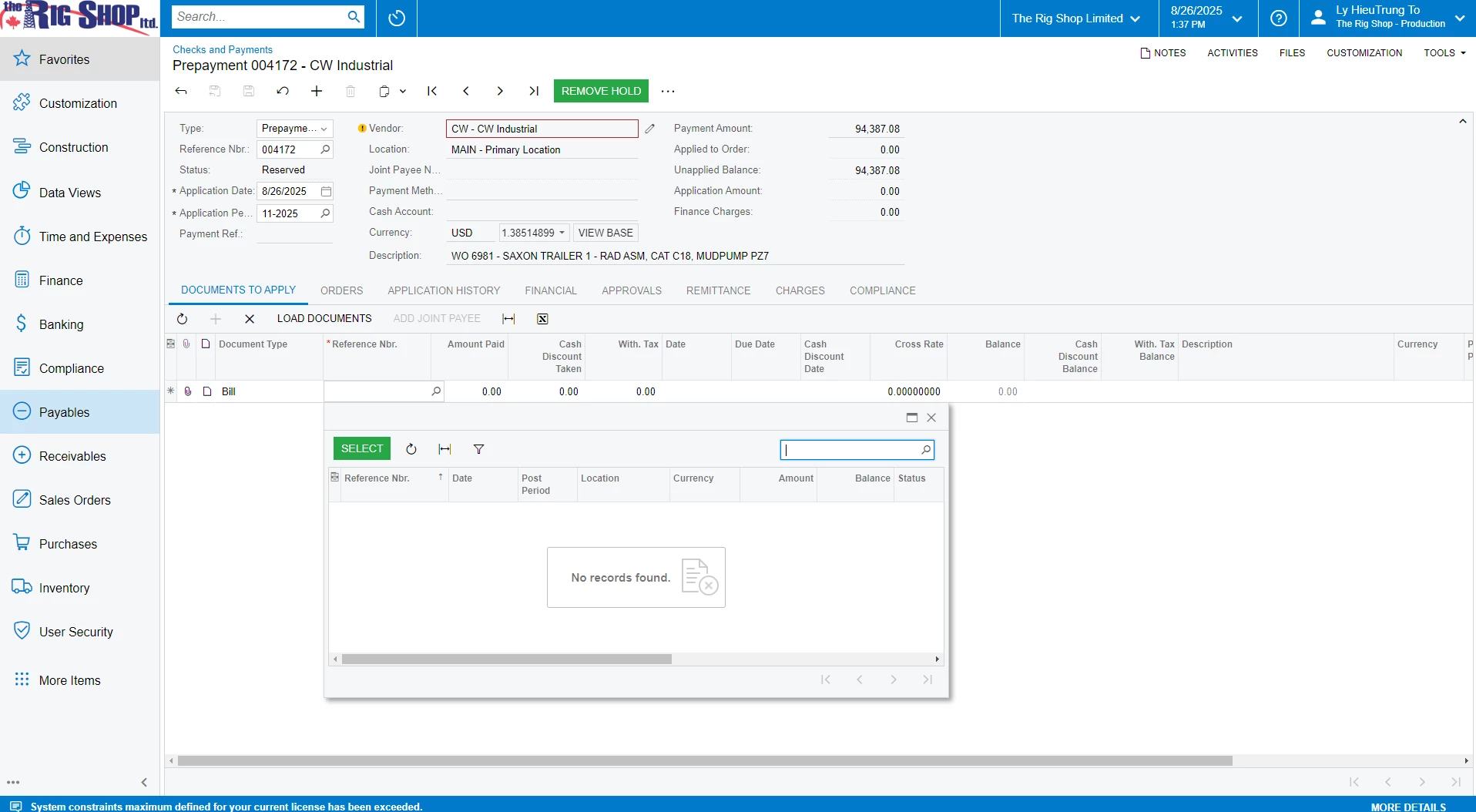 That screenshot is the Bills screen. In order to apply a prepayment to a bill, you need to go to the Prepayment screen and then pick up the bill from there (the second screenshot in your original post). Try that and let me know if you can see the bill.