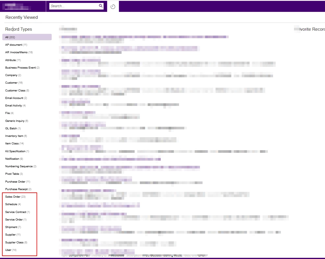 I am trying to scroll down the list of record types in the recently viewed transactions and I just cannot find a way to scroll down the Record Types.