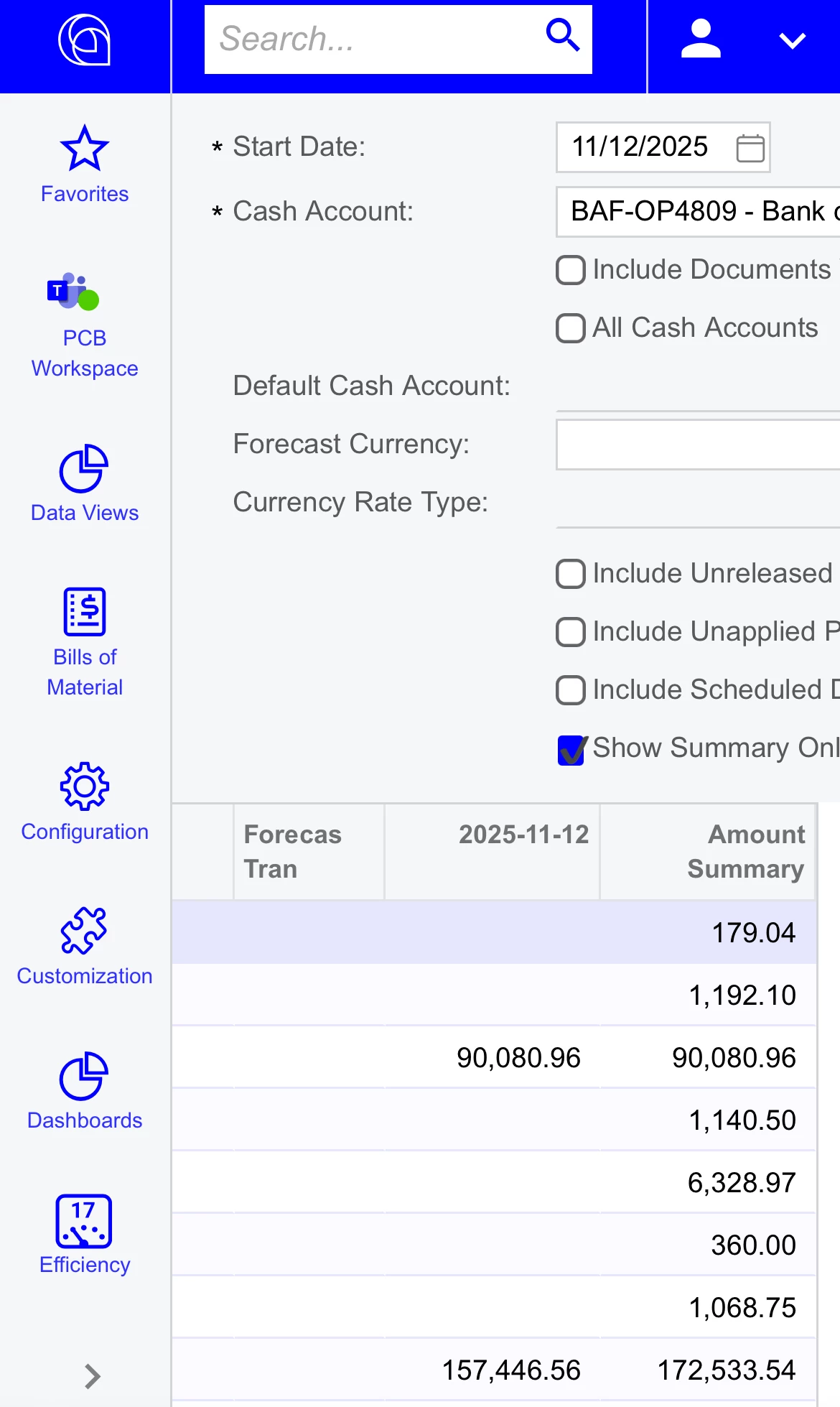 I would really like to build something simple that just shows me a total for a cash account based on todays current Balance and adjust for any AR or AP that is due within the parameter date range I give it.