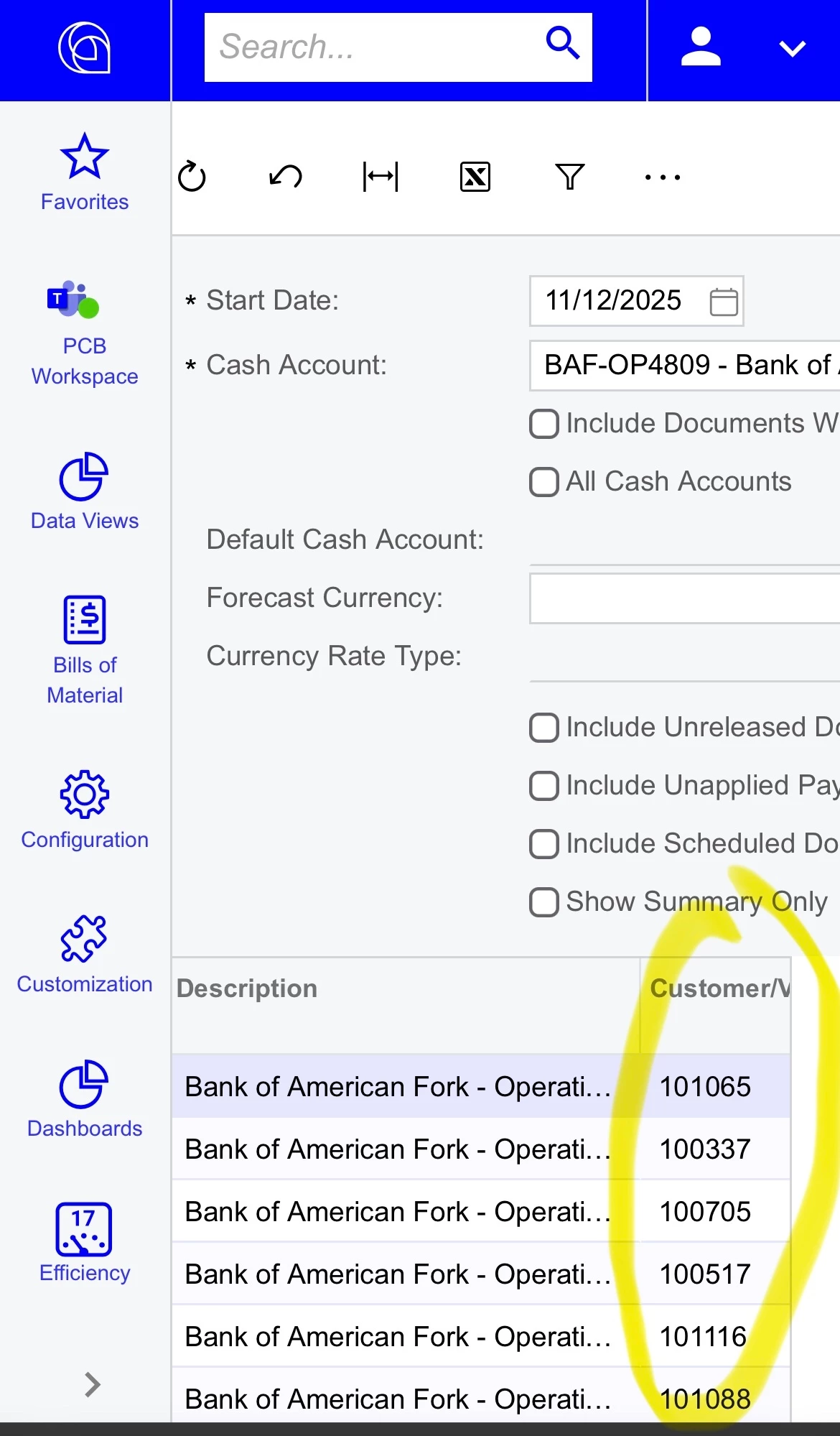 Almost all of the banking and finance inquiries are Customizations that do not let me pull that information in as a data source. And I am not experienced enough to mess with the customizations themselves.