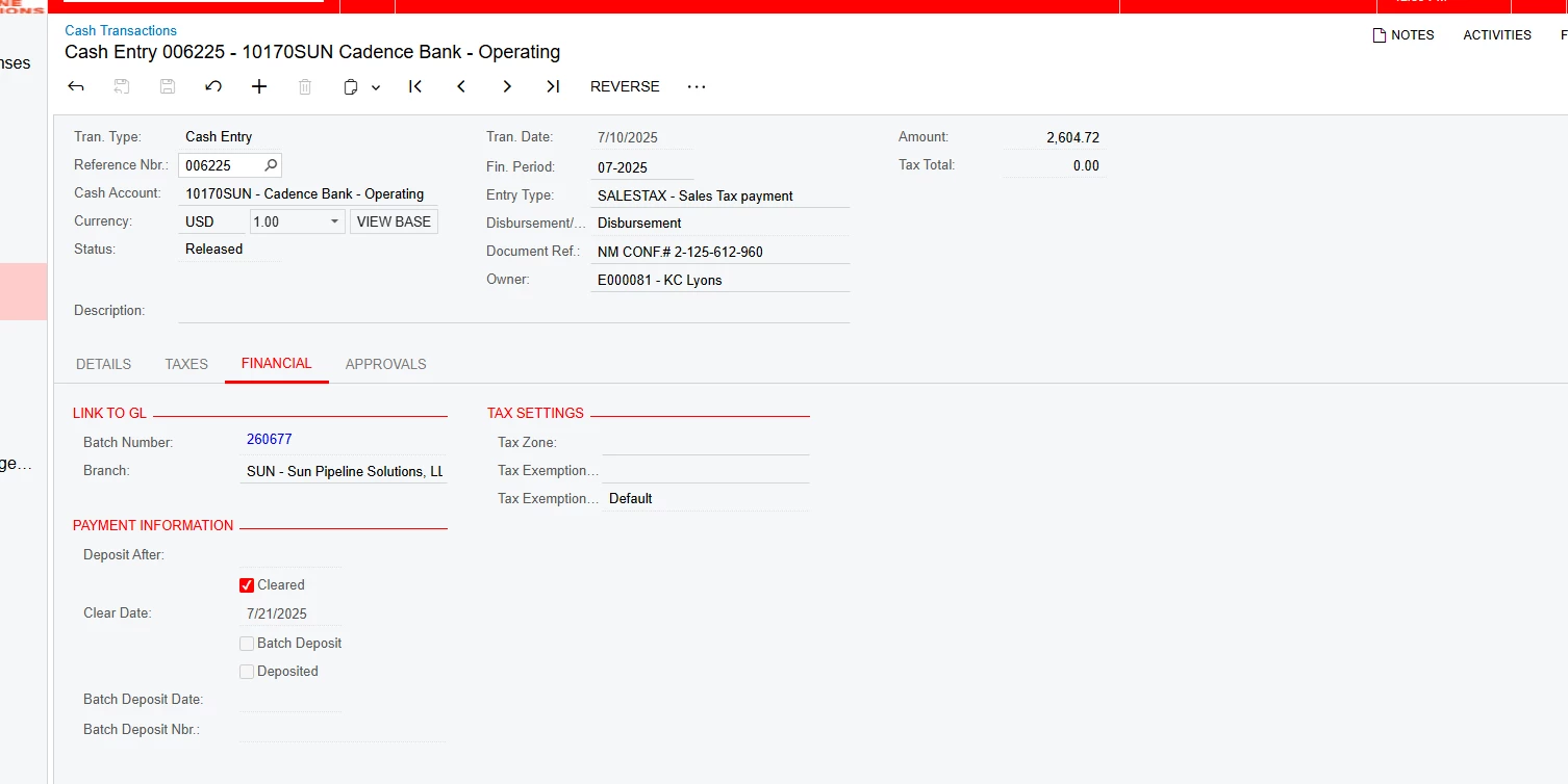 I have two Cash Entry transactions that show they were cleared. Since they are cleared they don’t show on the bank reconciliation; however, the bank rec is out of balance for the exact amount. The CA Account is correct; the COA is correct and don’t see any issues with the transaction. The clear date is in the same month as our Bank Rec. I could not find where it was cleared. The transaction was entered directly in the CA module.