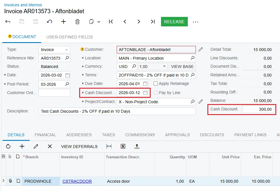 Hi, about to implement Acumatica Payments for an account and a good number of their customers take advantage of their 2% OFF if paid in 10 Days policy.