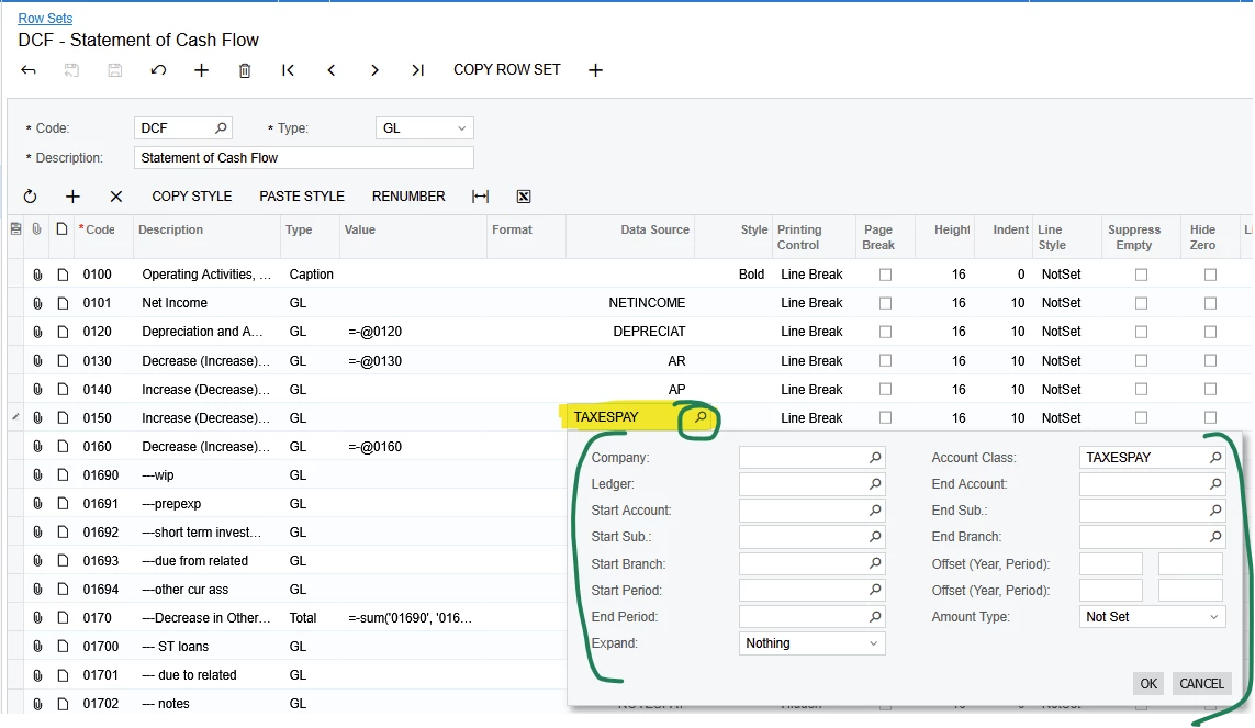 Hello! I am working on my cash flow statement to combine all branches to show ending balance through specified periods. I am not able to determine why not all of my branches are pulling into the rows - below are the setting I have currently… some lines are matching I assume to not having activity in other branches or post periods...any thoughts or ideas are welcome!