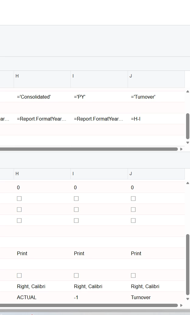 Your report will need to contain 12 columns of Turnover; or 13 depending on the number of fiscal periods in your year.