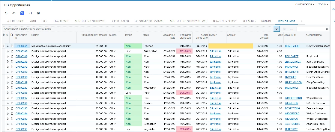 Looking for report ideas or recommendations to get to close rates by customer (Percentage of opportunities are being won by customer in quantity and dollars).  Thoughts?