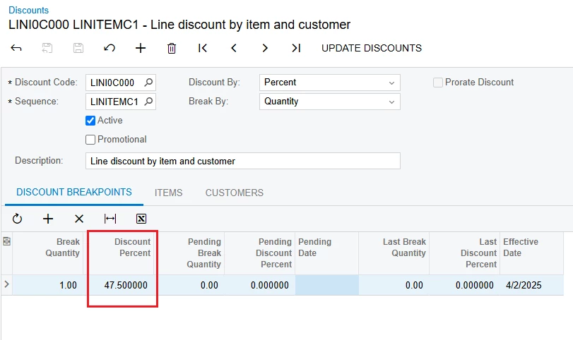 Because the new % is going to be different for every item since it’s calculating against the customer’s invoice cost, I don’t know if there’s a better way outside of manually calculating every possible item these customers could buy to and adding that sequence to the discount map? Can anyone see another way of applying this without being extremely manual?