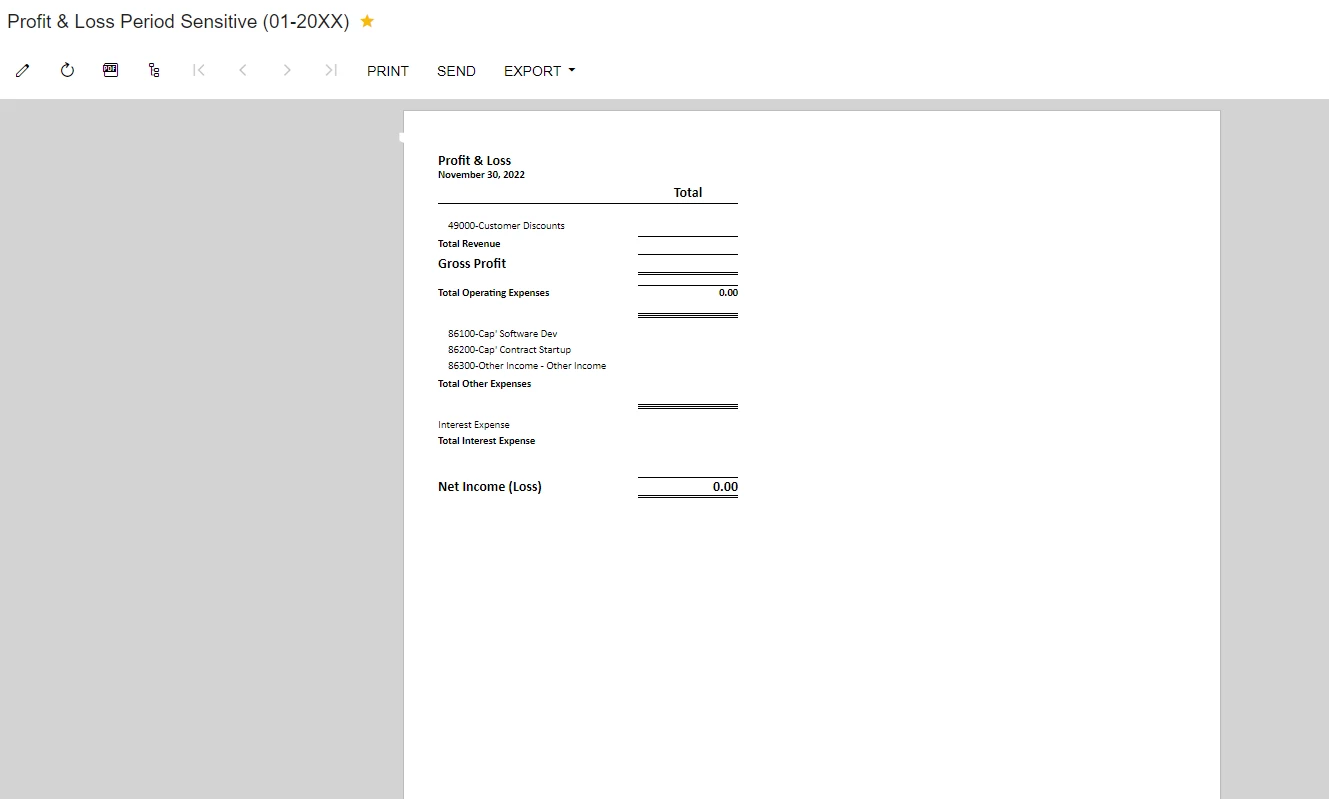 Error on Proft & Loss Period Sensitive Statement when date range goes from 2022-2023. So if I ran a P&L statement from April - November 2022 it would be fine or January - March 2023. But when I try to run a report across years this is how it shows up: